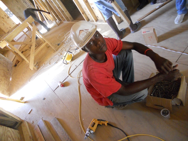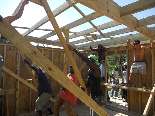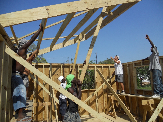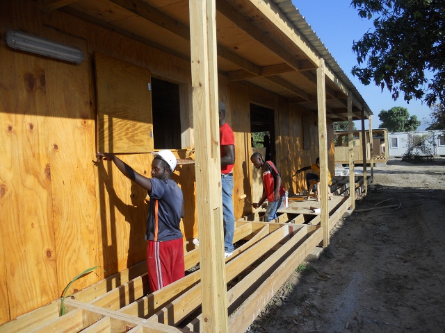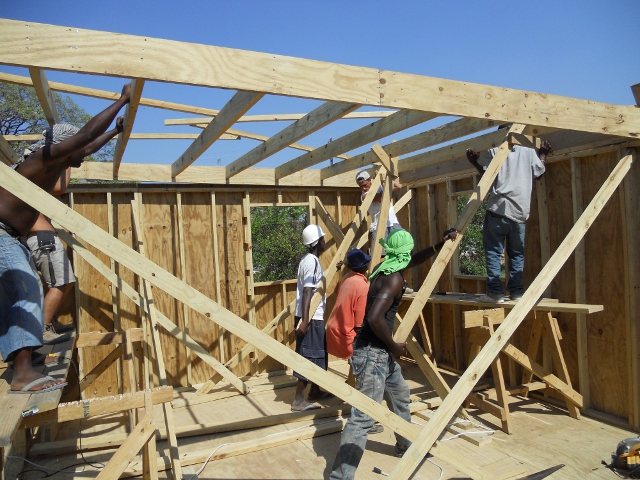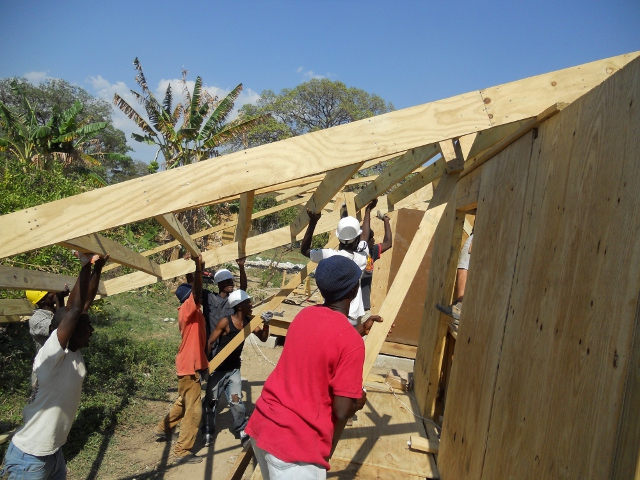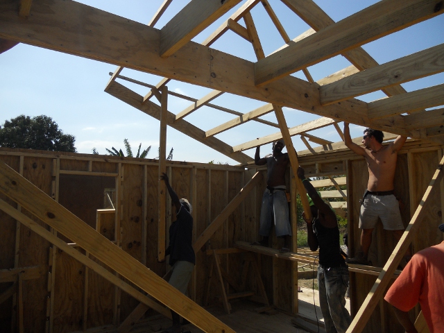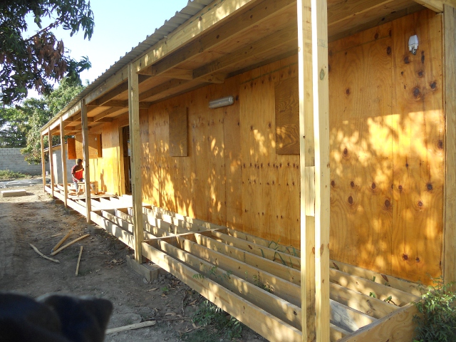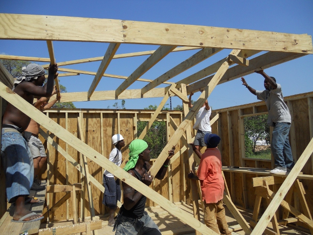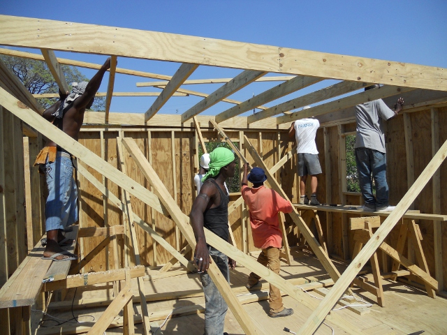 Les jours filent à vitesse grand "V" sur un ryhtme soutenu. Le défi que nous relevons est renversant. Cinq mois! Imaginez bâtir un hôpital en cinq mois. Et bien c'est ce que nous faisons. Une seule matière s'impose: le bois. Cette matière est relativement accessible en Haïti et supporte les conditions climatiques les plus hostiles.