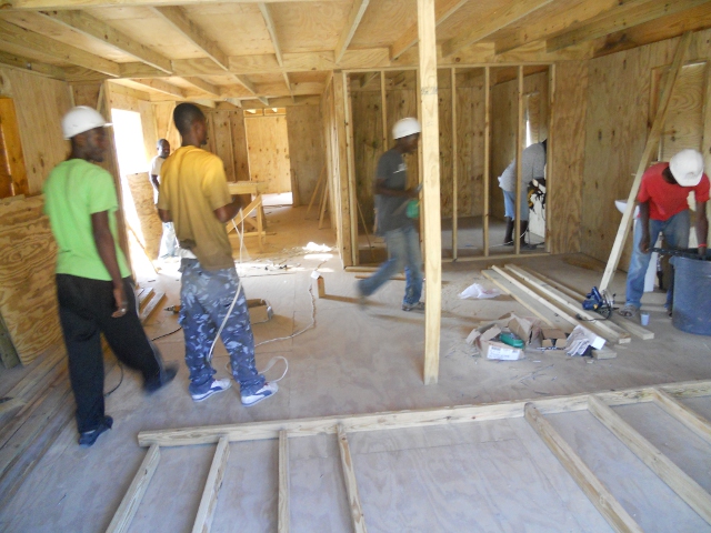 Pose de cloison intérieure sur les bâtiments de la troisième partie, l'équipe de Vianney fais ceci les yeux fermés... enfin mis clos en vérité.